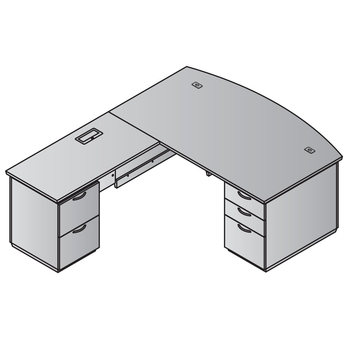 Tuxedo L-Shape w/ Bow Front Desk and Left Return 72×90 – Tuxedo – TUXDKR-TYP8L